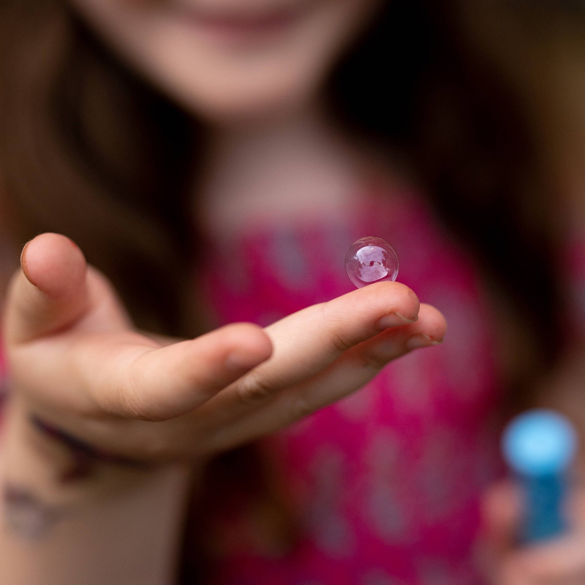 These bubbles are heroic! How's that? Well, these bubbles can be touched and they won't pop. These are tough bubs. You can make bubbly stacks or even bubble sculptures. Sometimes you find a little bubble weeks later, just sitting there being... not your basic bubble.