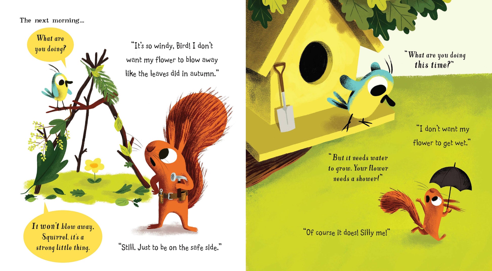 Spring is here and today a flower has sprung to life. But when Squirrel becomes too protective of it, Bird shows Squirrel the right way to let flowers blossom and grow.